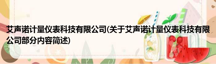 艾声诺计量仪表科技有限公司(关于艾声诺计量仪表科技有限公司部分内容简述)