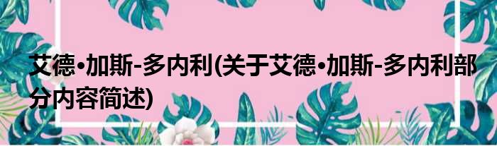 大家好,今天小方来说说一篇关于艾德·加斯-多内利,关于艾德·加斯-多内利部分内容简述的文章,那么现在就为大家来简单介绍下,希望对各位小伙伴们有所帮助。