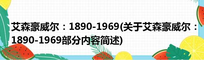 艾森豪威尔:1890-1969(关于艾森豪威尔:1890-1969部分内容简述)