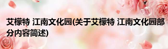 艾檬特 江南文化园(关于艾檬特 江南文化园部分内容简述)
