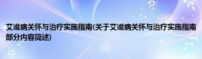 艾滋病关怀与治疗实施指南(关于艾滋病关怀与治疗实施指南部分内容简述)