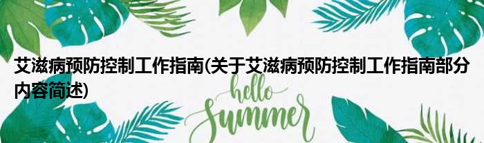 艾滋病预防控制工作指南(关于艾滋病预防控制工作指南部分内容简述)