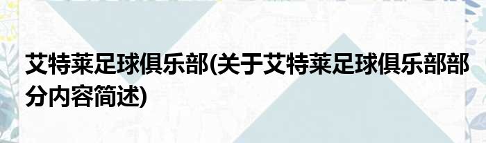 艾特莱足球俱乐部(关于艾特莱足球俱乐部部分内容简述)