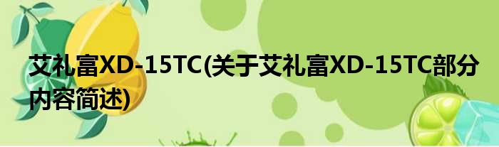 艾礼富XD-15TC(关于艾礼富XD-15TC部分内容简述)