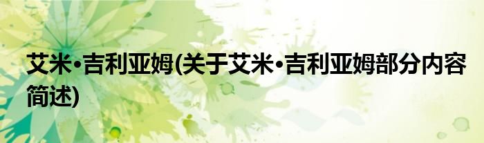 大家好,今天小方来说说一篇关于艾米·吉利亚姆,关于艾米·吉利亚姆部分内容简述的文章,那么现在就为大家来简单介绍下,希望对各位小伙伴们有所帮助。