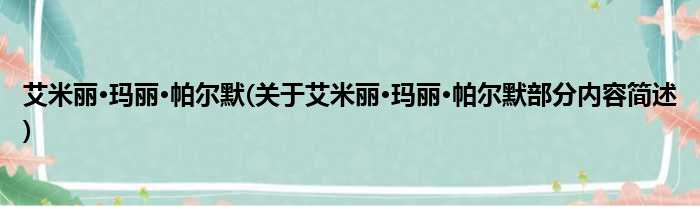 艾米丽·玛丽·帕尔默(关于艾米丽·玛丽·帕尔默部分内容简述)