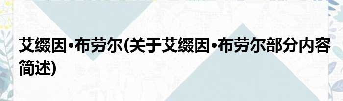 艾缀因·布劳尔(关于艾缀因·布劳尔部分内容简述)