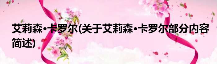 大家好,今天小方来说说一篇关于艾莉森·卡罗尔,关于艾莉森·卡罗尔部分内容简述的文章,那么现在就为大家来简单介绍下,希望对各位小伙伴们有所帮助。