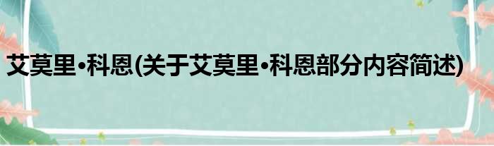 艾莫里·科恩(关于艾莫里·科恩部分内容简述)
