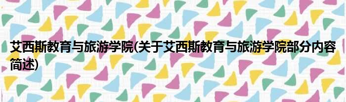 艾西斯教育与旅游学院(关于艾西斯教育与旅游学院部分内容简述)