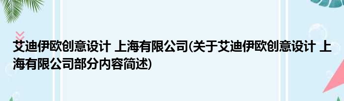 艾迪伊欧创意设计 上海有限公司(关于艾迪伊欧创意设计 上海有限公司部分内容简述)