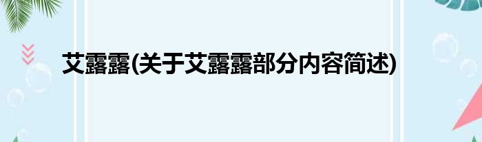 大家好,今天小方来说说一篇关于艾露露,关于艾露露部分内容简述的文章,那么现在就为大家来简单介绍下,希望对各位小伙伴们有所帮助。