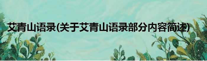 大家好,今天小方来说说一篇关于艾青山语录,关于艾青山语录部分内容简述的文章,那么现在就为大家来简单介绍下,希望对各位小伙伴们有所帮助。