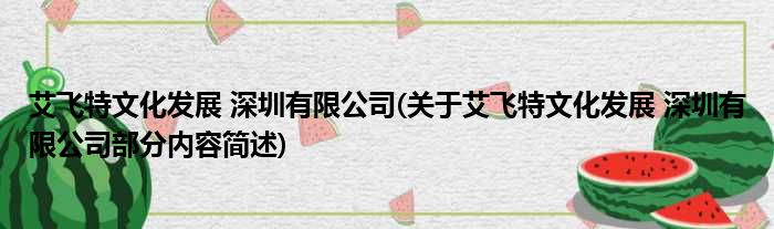 艾飞特文化发展 深圳有限公司(关于艾飞特文化发展 深圳有限公司部分内容简述)