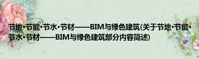 节地·节能·节水·节材——BIM与绿色建筑(关于节地·节能·节水·节材——BIM与绿色建筑部分内容简述)