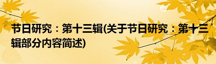 节日研究:第十三辑(关于节日研究:第十三辑部分内容简述)