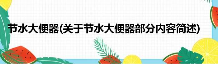 大家好,今天小方来说说一篇关于节水大便器,关于节水大便器部分内容简述的文章,那么现在就为大家来简单介绍下,希望对各位小伙伴们有所帮助。
