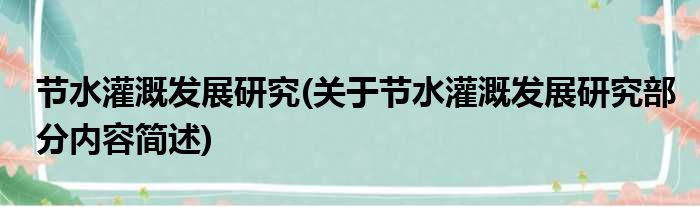 节水灌溉发展研究(关于节水灌溉发展研究部分内容简述)