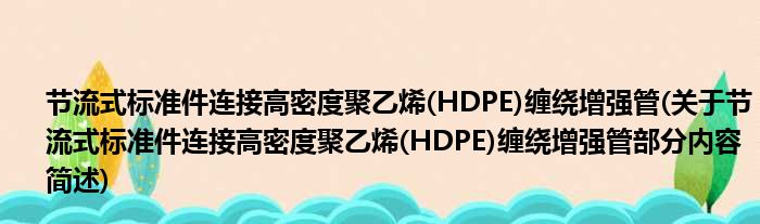 节流式标准件连接高密度聚乙烯(HDPE)缠绕增强管(关于节流式标准件连接高密度聚乙烯(HDPE)缠绕增强管部分内容简述)