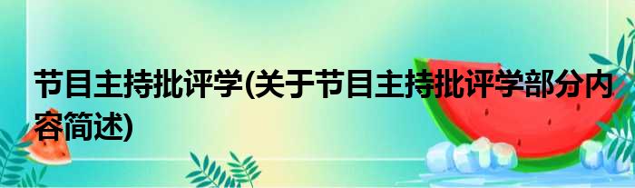 节目主持批评学(关于节目主持批评学部分内容简述)