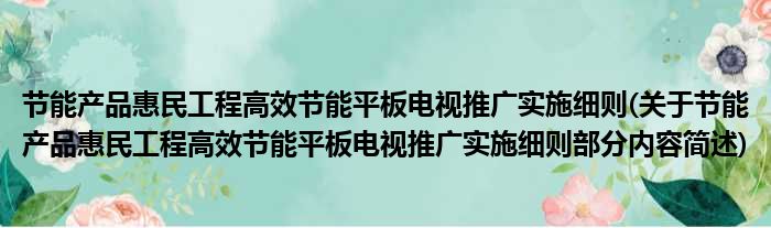 节能产品惠民工程高效节能平板电视推广实施细则(关于节能产品惠民工程高效节能平板电视推广实施细则部分内容简述)