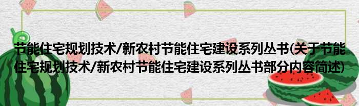 节能住宅规划技术/新农村节能住宅建设系列丛书(关于节能住宅规划技术/新农村节能住宅建设系列丛书部分内容简述)