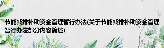 节能减排补助资金管理暂行办法(关于节能减排补助资金管理暂行办法部分内容简述)