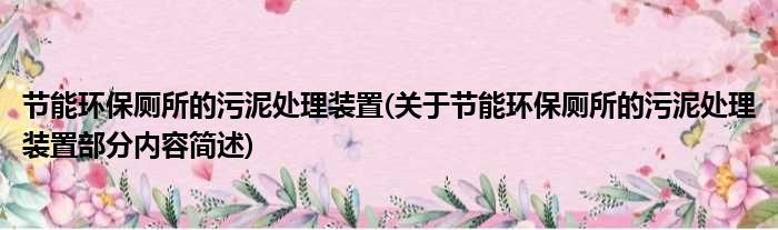节能环保厕所的污泥处理装置(关于节能环保厕所的污泥处理装置部分内容简述)