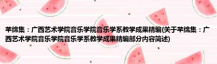 芊绵集:广西艺术学院音乐学院音乐学系教学成果精编(关于芊绵集:广西艺术学院音乐学院音乐学系教学成果精编部分内容简述)