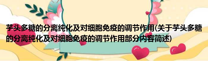 芋头多糖的分离纯化及对细胞免疫的调节作用(关于芋头多糖的分离纯化及对细胞免疫的调节作用部分内容简述)