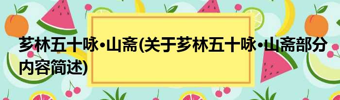 芗林五十咏·山斋(关于芗林五十咏·山斋部分内容简述)