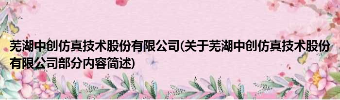 芜湖中创仿真技术股份有限公司(关于芜湖中创仿真技术股份有限公司部分内容简述)
