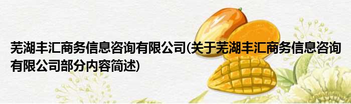 芜湖丰汇商务信息咨询有限公司(关于芜湖丰汇商务信息咨询有限公司部分内容简述)