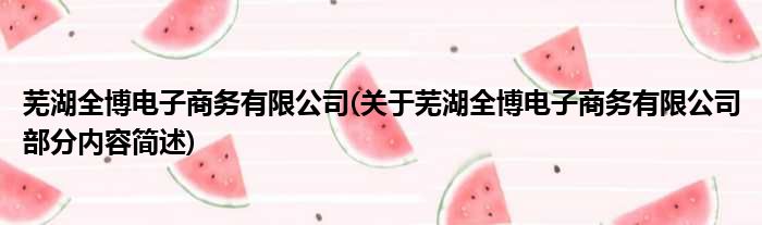 芜湖全博电子商务有限公司(关于芜湖全博电子商务有限公司部分内容简述)