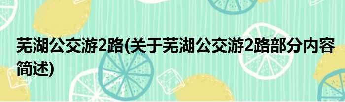 芜湖公交游2路(关于芜湖公交游2路部分内容简述)