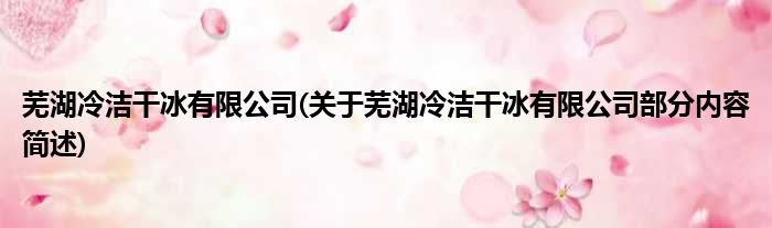 芜湖冷洁干冰有限公司(关于芜湖冷洁干冰有限公司部分内容简述)