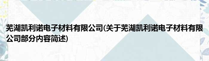 芜湖凯利诺电子材料有限公司(关于芜湖凯利诺电子材料有限公司部分内容简述)