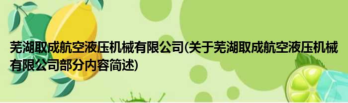 芜湖取成航空液压机械有限公司(关于芜湖取成航空液压机械有限公司部分内容简述)