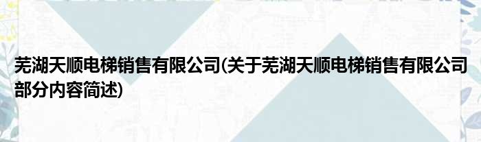 芜湖天顺电梯销售有限公司(关于芜湖天顺电梯销售有限公司部分内容简述)