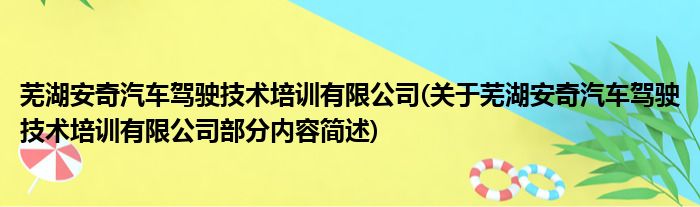 芜湖安奇汽车驾驶技术培训有限公司(关于芜湖安奇汽车驾驶技术培训有限公司部分内容简述)