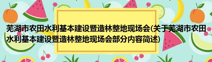 芜湖市农田水利基本建设暨造林整地现场会(关于芜湖市农田水利基本建设暨造林整地现场会部分内容简述)