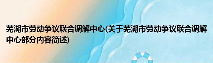 芜湖市劳动争议联合调解中心(关于芜湖市劳动争议联合调解中心部分内容简述)
