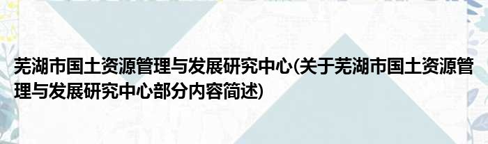 芜湖市国土资源管理与发展研究中心(关于芜湖市国土资源管理与发展研究中心部分内容简述)