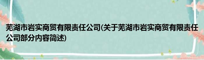 芜湖市岩实商贸有限责任公司(关于芜湖市岩实商贸有限责任公司部分内容简述)