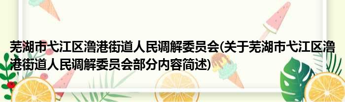 芜湖市弋江区澛港街道人民调解委员会(关于芜湖市弋江区澛港街道人民调解委员会部分内容简述)