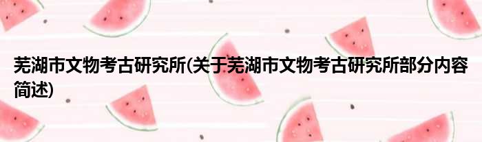 芜湖市文物考古研究所(关于芜湖市文物考古研究所部分内容简述)