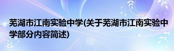 芜湖市江南实验中学(关于芜湖市江南实验中学部分内容简述)