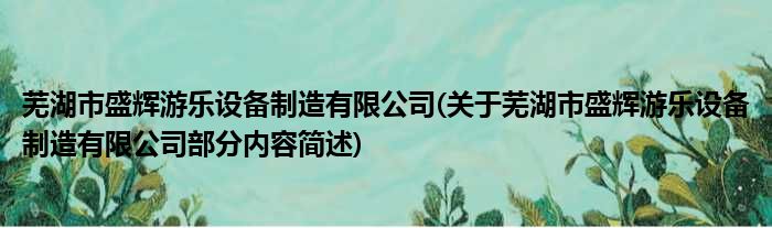 芜湖市盛辉游乐设备制造有限公司(关于芜湖市盛辉游乐设备制造有限公司部分内容简述)