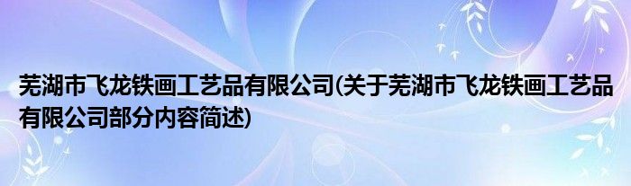 芜湖市飞龙铁画工艺品有限公司(关于芜湖市飞龙铁画工艺品有限公司部分内容简述)