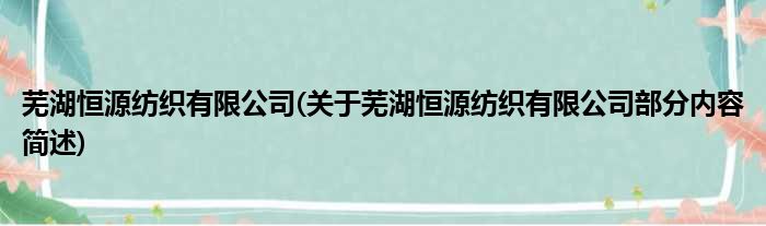 芜湖恒源纺织有限公司(关于芜湖恒源纺织有限公司部分内容简述)